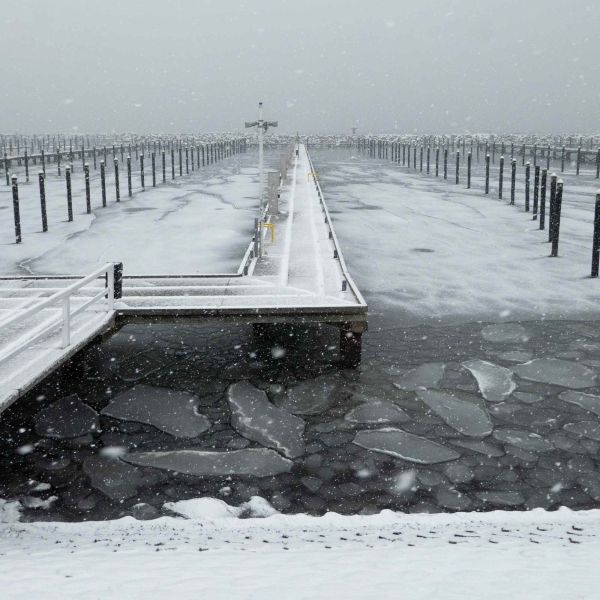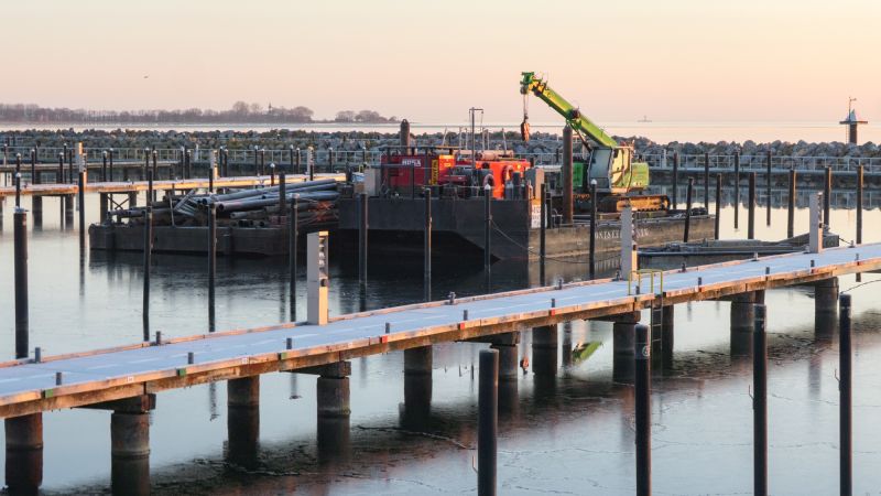 Am Steg 5 ist noch alles ruhig, aber die ersten Arbeiten an den Schiffen finden auch im Hafenvorfeld schon statt. Bald sind alle wieder schick und im Wasser.